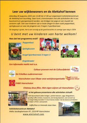 Buurtdag Zaterdag 30 augustus bij Activiteitencentrum ‘Alettahof’